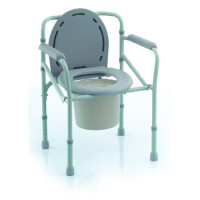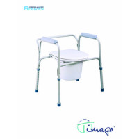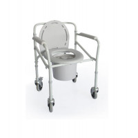 skládací rám na kolečkách, pro mobilní použití POPIS Rám křesla je z skládací, což usnadňuje skladování v době, kdy není křeslo používáno. Nohy jsou výškově nastavitelné a opatřeny koly v otočných vidlicích s brzdami na zadních kolech pro přesun a možnost nacouvání na běžnou toaletu. Součástí je plastová sanitární nádoba s víkem, která je snadno v..
