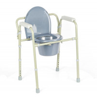 skládací rám, nosnost 136kg POPIS Rám křesla je z skládací, což usnadňuje skladování v době, kdy není křeslo používáno. Nohy jsou výškově nastavitelné a opatřeny protiskluzovými nástavci. Součástí je plastová sanitární nádoba s víkem, která je snadno vyjímatelná a záchodové prkénko s poklopem. Plastové boční područky zabezpečují stabilitu a bezpeč..